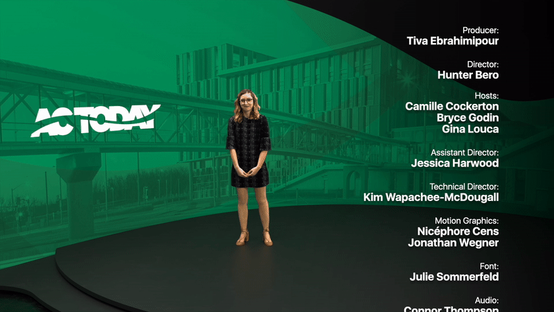 I made the following graphics and I also designed the virtual set for a studio show focusing on local news, events, and sports at Algonquin College.